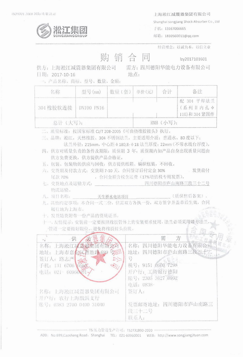 二、貴州天生橋水電站項目使用DN100不銹鋼法蘭橡膠接頭合同介紹: