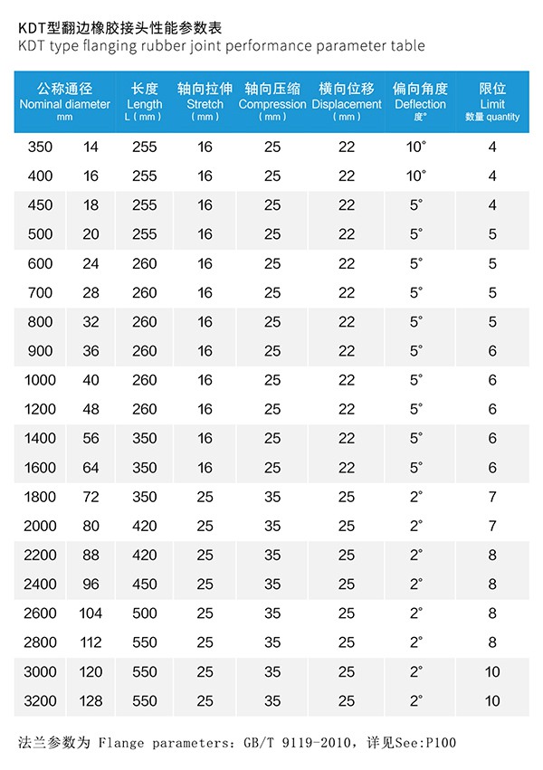 二、RE型脫硫橡膠膨脹節參數介紹: